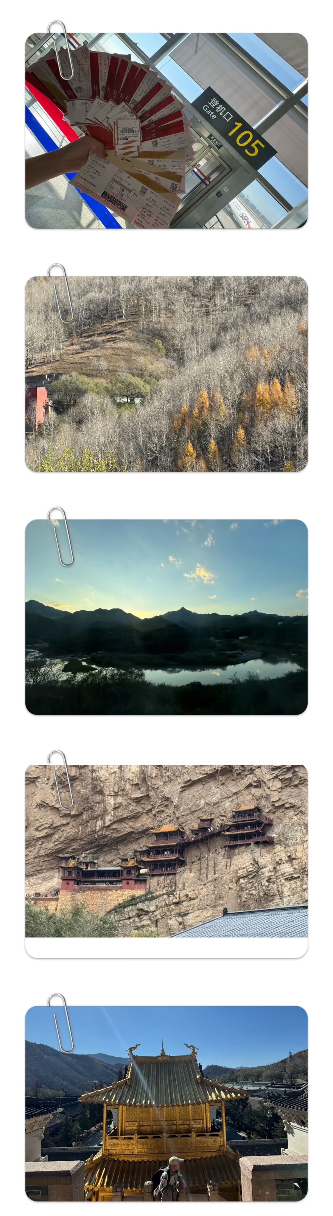 明月别枝惊鹊,清风半夜鸣蝉。海南还是滨海夏夜,一飞入晋已是深秋,骤然降温更是寒冬凛冽,一时之间,季节更迭、岁月向晚。公司2024年员工福利游如约而至,今年去往三晋大地。正如旅行通知中所说:今年你可能已经去了很多地方,也可能还未出发。但你一定还没有和我们一起出行,在旅途中一起吃饭、一起发胖。有趣的人生,一半是工作家常,一半是山川湖海。忙有所得,闲有所乐,出发永远比向往更有意义。我们不要把时间浪费在准备上,而是要花在我们的旅途里。所以,我们出发啦!在2024年10月19日,与2023年度优秀员工一起二十余人,6天5晚,身边都是熟悉的小伙伴。山西作为中华民族的发祥地之一,其历史之悠久,内在之丰富,不是一篇游记,几段文字所能概述。地理、历史、民俗、美食,真的只想请看客一游。从上古“三皇五帝”传说中,从历史先贤的长流中,从丘陵盆地山地高原的地理中,从丰富的自然资源中……去了解人文古韵,醉美山西。满屏壮阔黄河壶口、巍巍太行八百里、天下九塞雁门为首……天地有大美而不言,历史变迁一晃几千年,而地理却是潜移默化,登临古人访过的山水,读他们留下的诗篇,看他们留下的鲜活痕迹,谁人不叹岁月短。